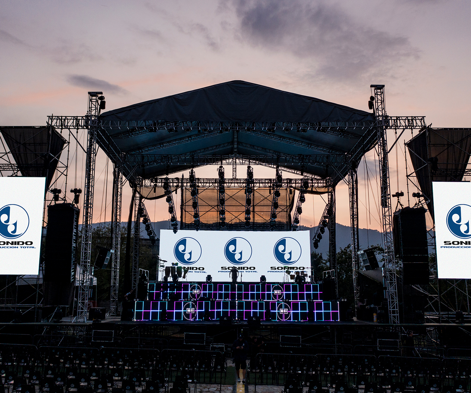 Panelería, mobiliario, sistemas de sonido, iluminación, video, estructuras y techos.